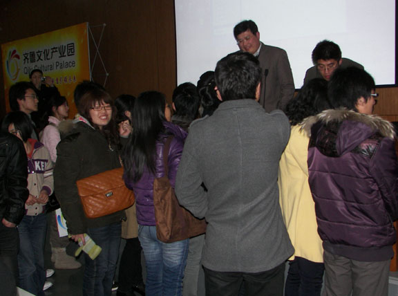 宣讲会上,齐鲁文化产业园总经理助理张建彬针对齐鲁文化产业园具体情况做出了详尽的介绍。首先,张经理针对齐鲁文化产业园的相关岗位需要具备的条件、在职培训、工资以及住宿安排等详尽事宜。对涉及到的管理及市场、非遗视听、创意LOFT、青春DIY和客户服务中心等职位的岗位要求以及待遇作了具体详细地介绍。