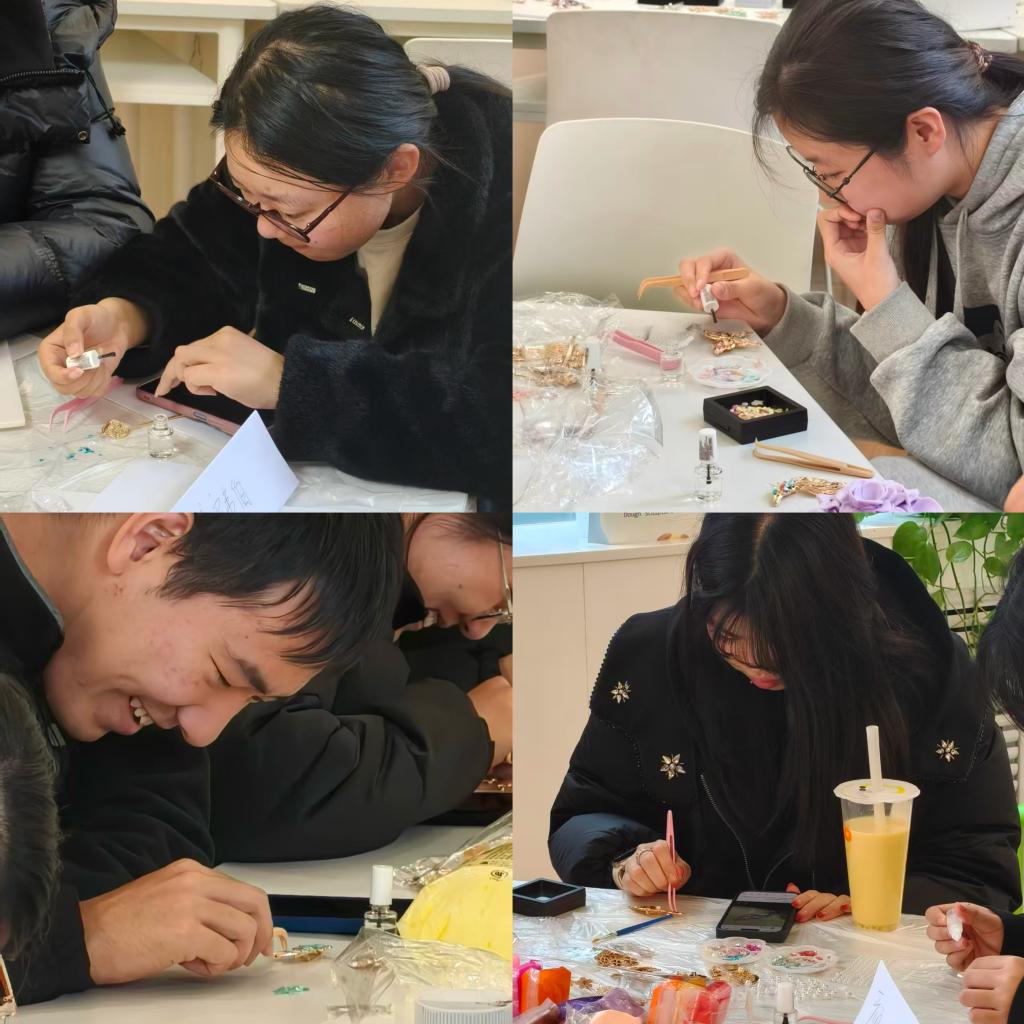 在冬日的静谧中,彩色的贝母承载着时光的低语,成为连接内心与非遗文化的桥梁。从选贝、色彩搭配,到打磨叠加、镶嵌拼贴,同学们在全神贯注中沉淀纷乱的思绪,沉浸于“心流体验”。