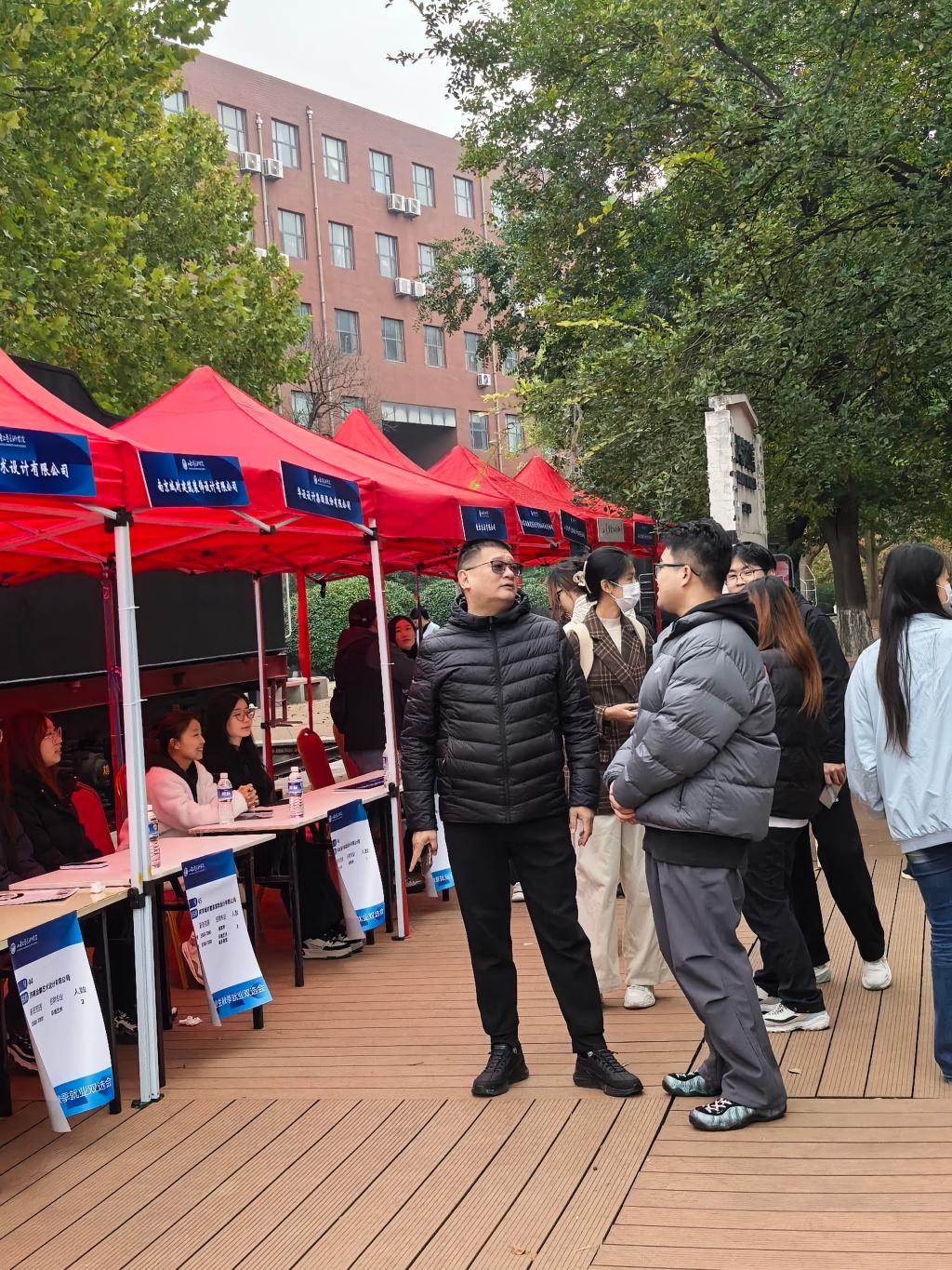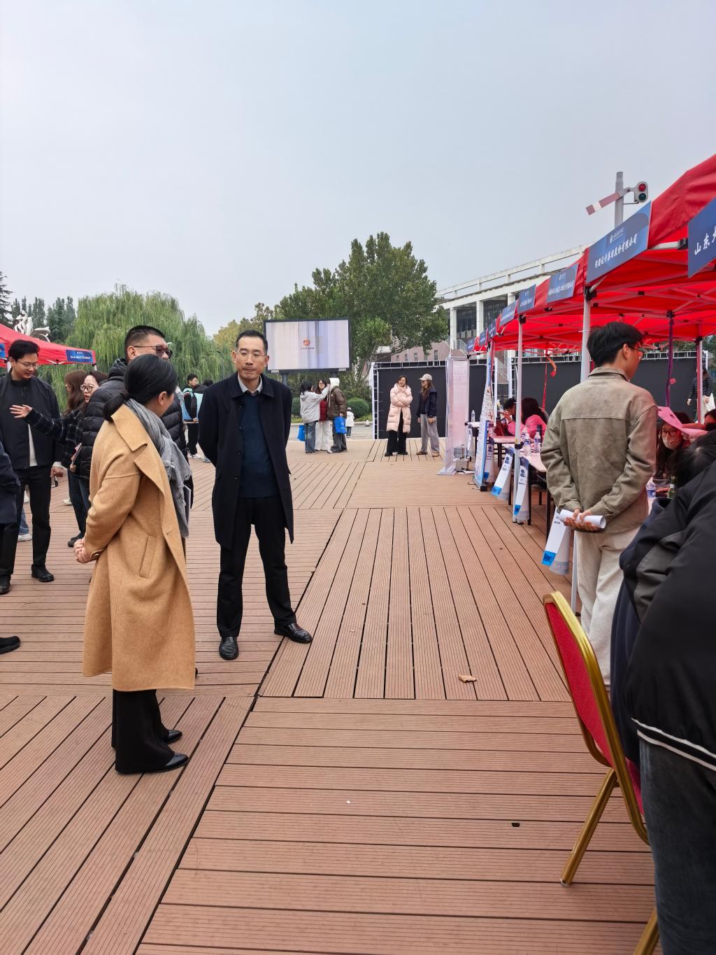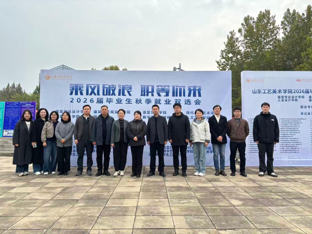 为深入贯彻国家关于高校毕业生就业工作的指导精神,搭建供需精准平台,促进2026届毕业生高质量充分就业,10月28日,由视觉传达设计学院、建筑与景观设计学院、工业设计学院、服装学院联合举办的2026届“艺启金秋,职筑未来”毕业生秋季就业双选会,在长清校区设计师广场顺利举行。副院长张艳霞,党委委员、统战部部长安峰亲临现场指导工作。
