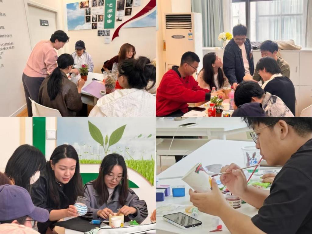 春转夏来,绿意盎然。翩然而至的五月让心理健康的旭风沁入心间,为深入践行五育并举理念,以美润心,健体强心,以艺绘心,引导学生在艺术创作与自然互动中放松身心,学生工作部(处)学生心理健康教育中心于3月26日、4月2日和5月21日在办公楼2007室举办了三期“植语心会 静待花开”艺术手造+种植团体辅导活动。此次活动由学生工作部(处)心理健康教育中心主任李翠华主持。